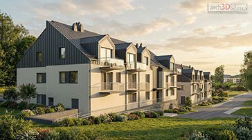 Na jesieni roku 2024 wielka powódź zniszczyła Lądek Zdrój.. Otrzymaliśmy zlecenie zaprojektowania nowych mieszkań, które miasto zapewni poszkodowanym mieszkańcom. W wyniku naszych działań zdaliśmy projekt dwóch budynków wielorodzinnych z 40-toma mieszkaniami. Poniżej wizualizacje do projektu wykonawczego.