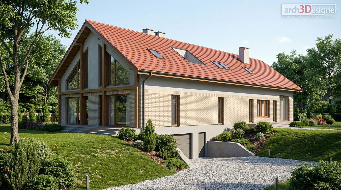 Wykonujemy również precyzyjne modele BIM 3D na bazie przesłanych rysunków w najnowszej wersji oprogramowania ArchiCAD. Dzięki temu render nie jest „ładnym obrazkiem” — tylko konsekwentną interpretacją projektu.