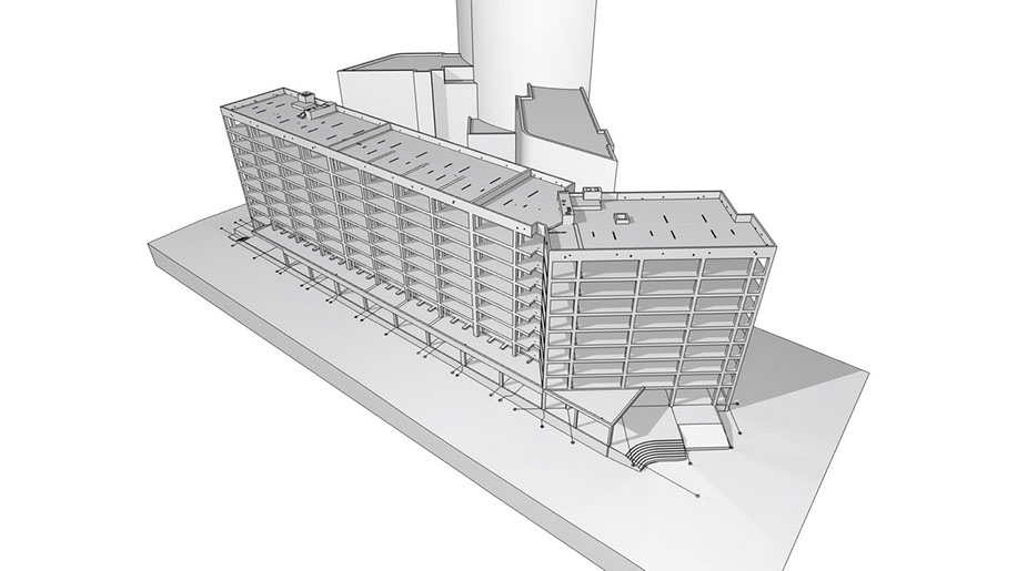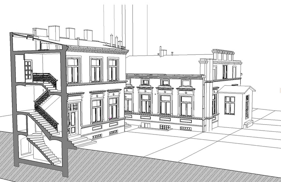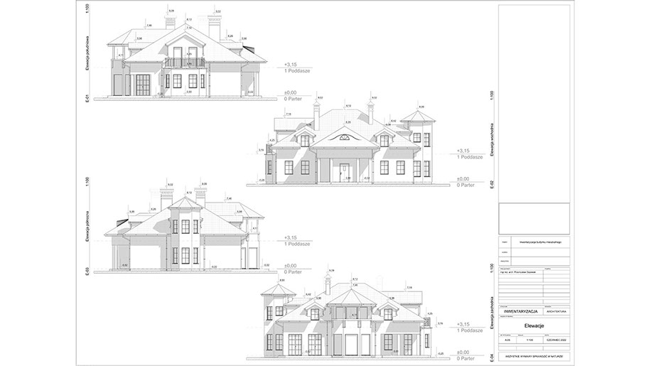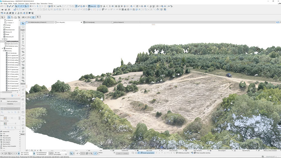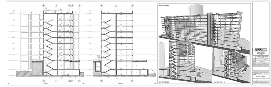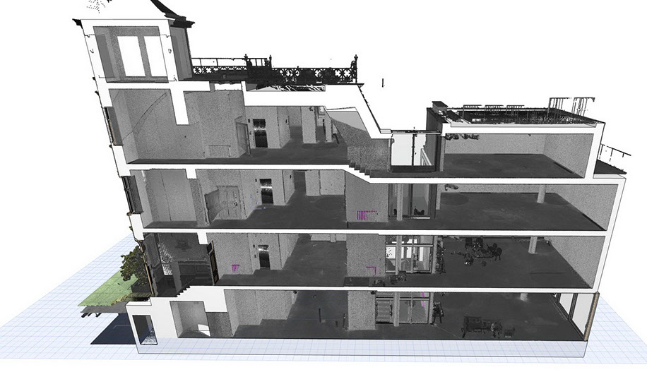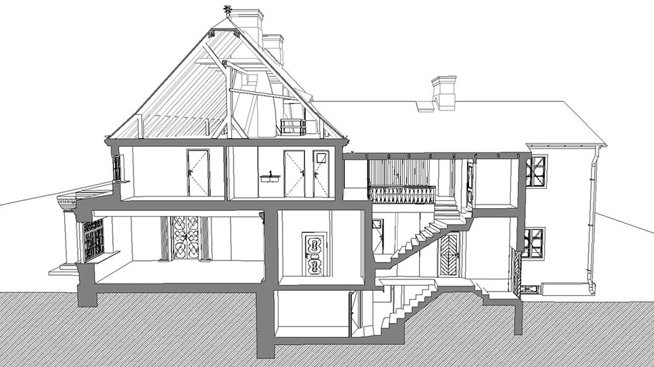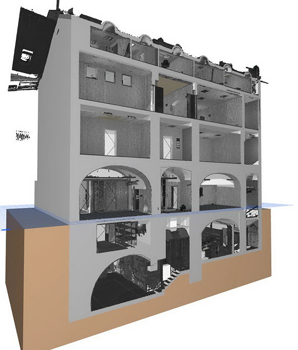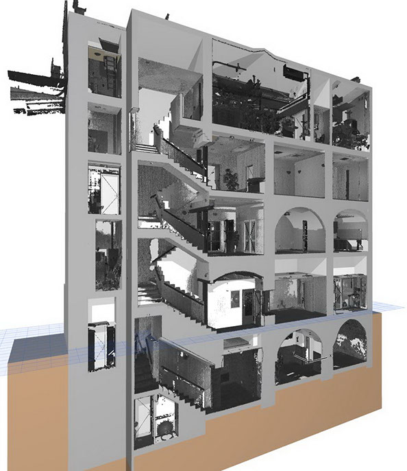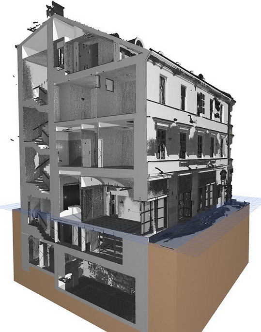 Chmura punktów służy za podstawę do tworzenia na jej bazie precyzyjnego modelu BIM, z którego otrzymujemy całą dokumentację techniczną: rzuty, przekroje, elewacje.