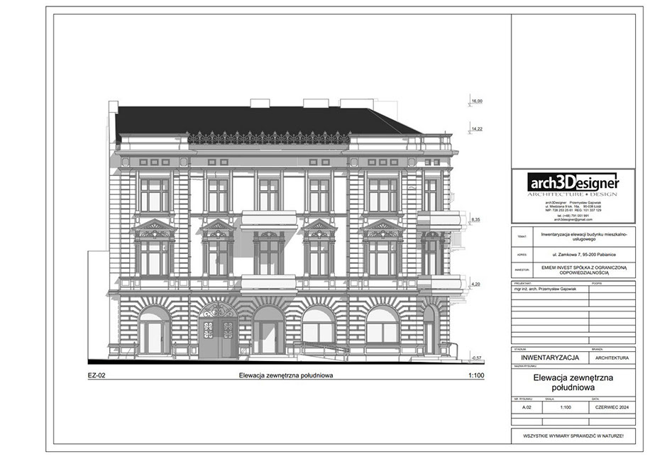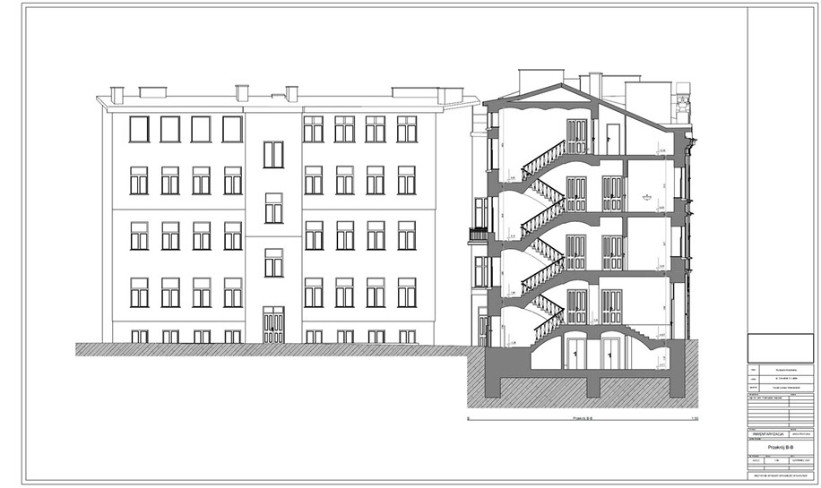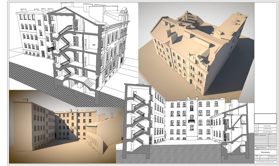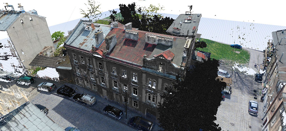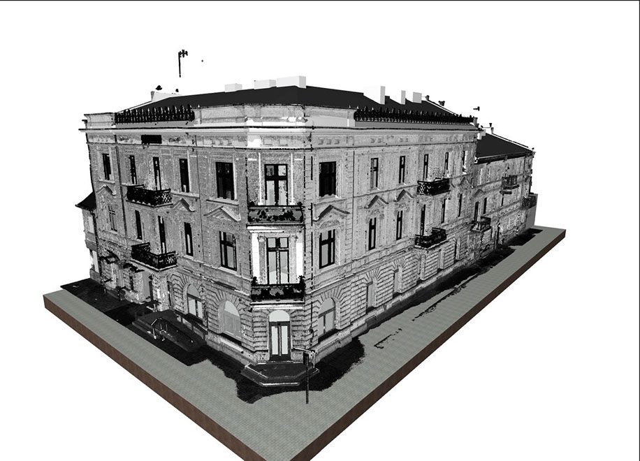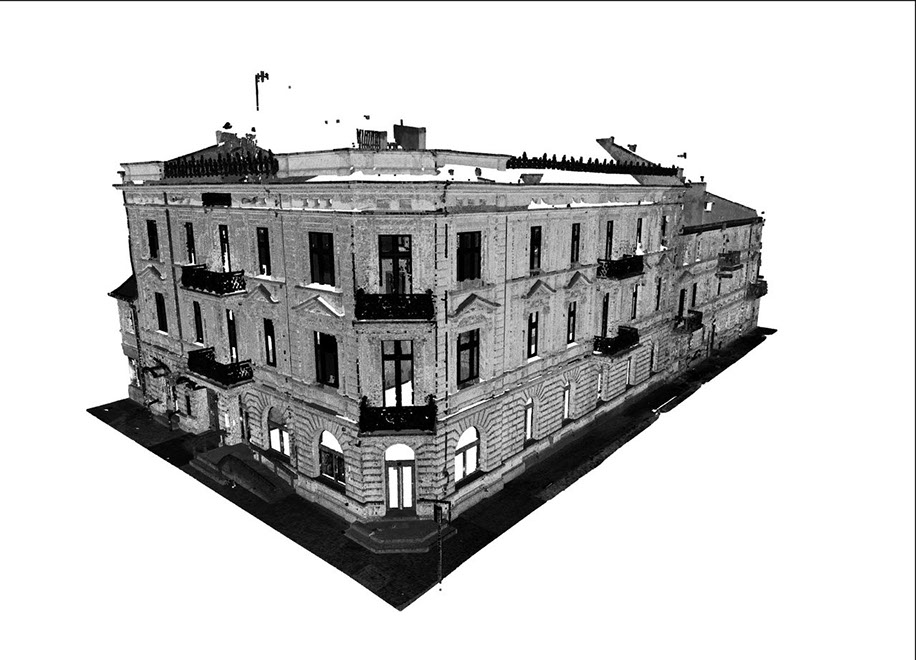 Przykład jednej z naszych realizacji: Łódź, Włókiennicza 11, dom Hilarego Majewskiego. Skan na potrzeby rewitalizacji kamienicy.