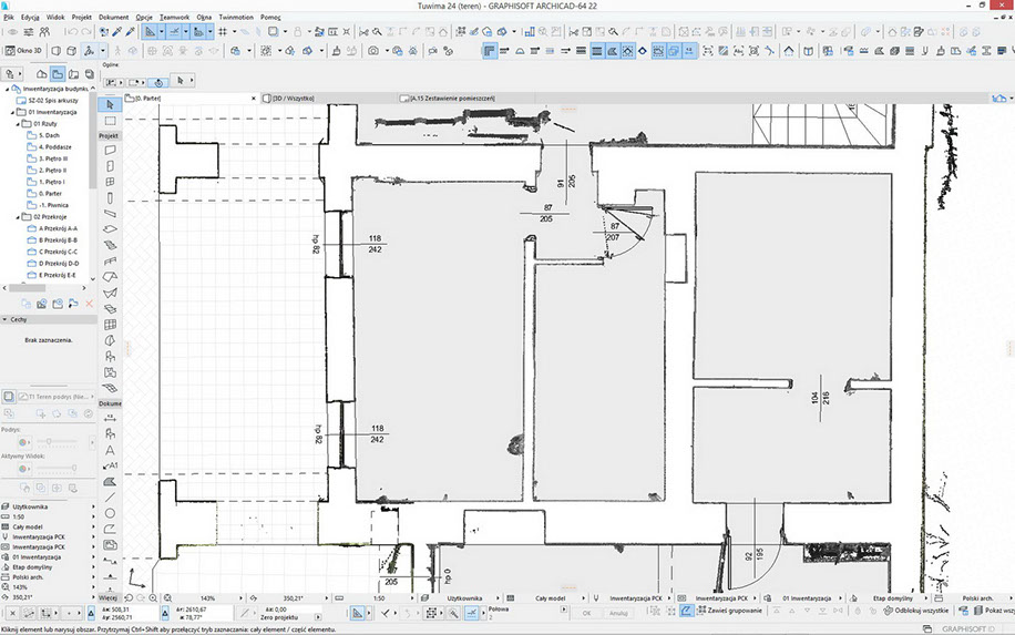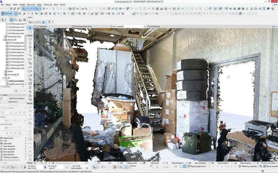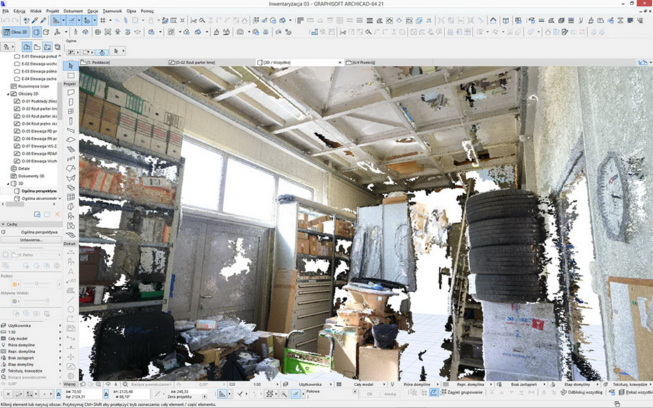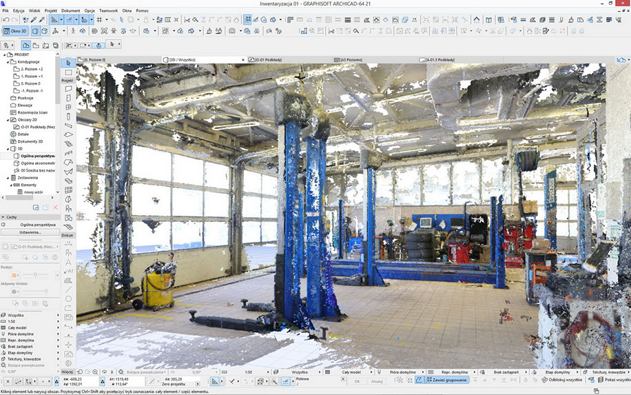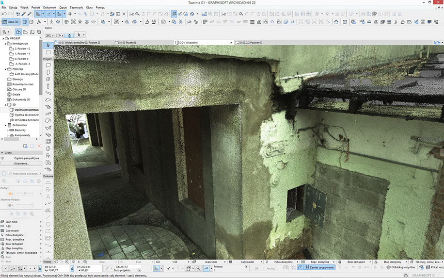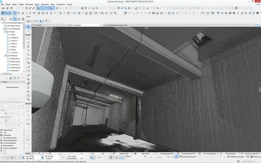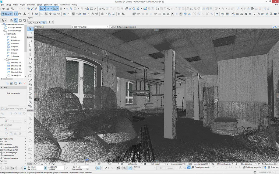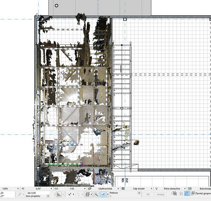 Na podstawie chmury punktów wykonujemy bardzo precyzyjny model BIM.