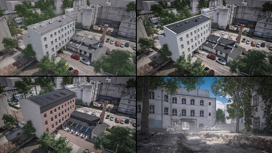 Oto przykłady implementacji fotogrametrii i skanów do animacji. Dzięki tej kombinacji możemy tworzyć profesjonalnie wyglądające projekcje stanu istniejącego, w połączeniu z nowo zaprojektowaną architekturą!
